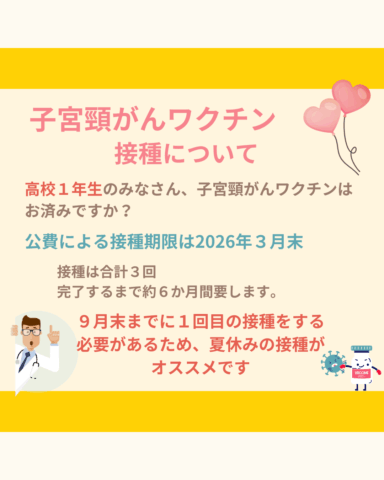 高校1年生のみなさん、子宮頚がんワクチンの期限が迫っています!